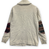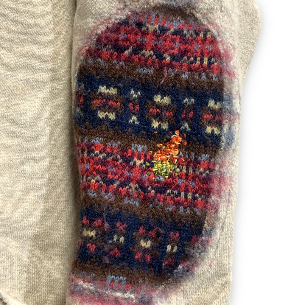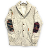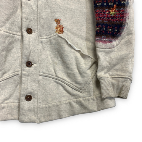 | NOTES | Some wear around the cuffs and some light dirt around the collar. Otherwise minor signs of overall wear. Good condition! Cotton sweat material body, genuine wool elbow patches, boro stitch detailing, wooden front button closure. Lots of beautiful details! | |