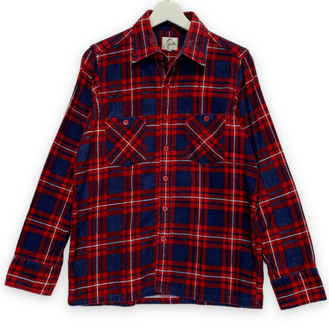 [XS] Needles Unfinished Frayed Bottom Flannel BD Shirt Red