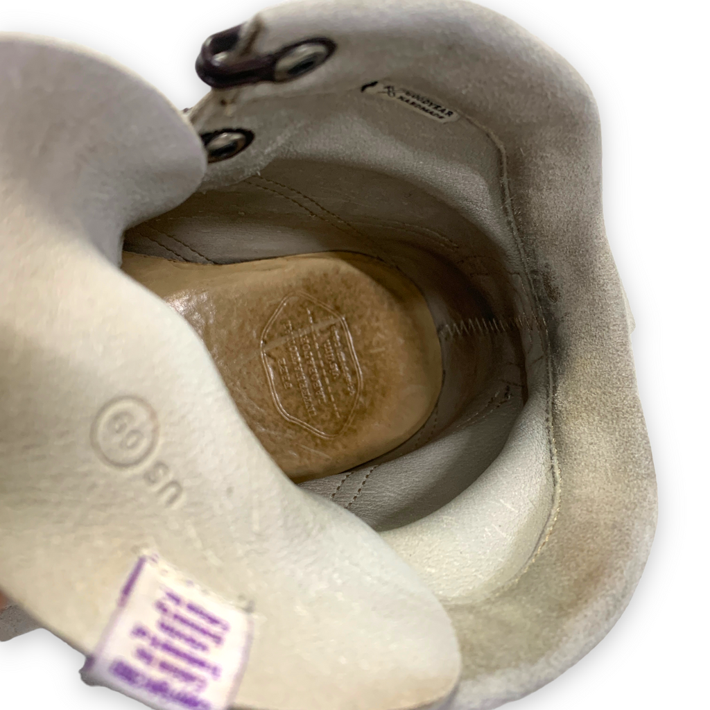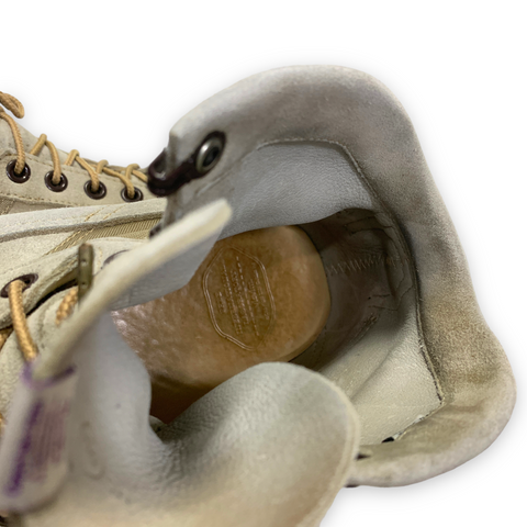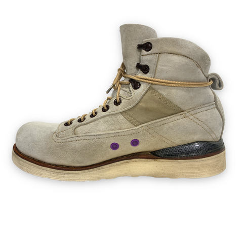 General signs of wear to the soles and uppers. No significant damage. Plenty of life left! Soft suede uppers, Vibram outsoles (replaceable), carbon fiber heel stabilizer. Tags included. Please note, although it is not likely with this type of sole, as with any shoe of this age, sole separation (repairable) from wear is a risk. Please understand this before purchasing/wearing. |