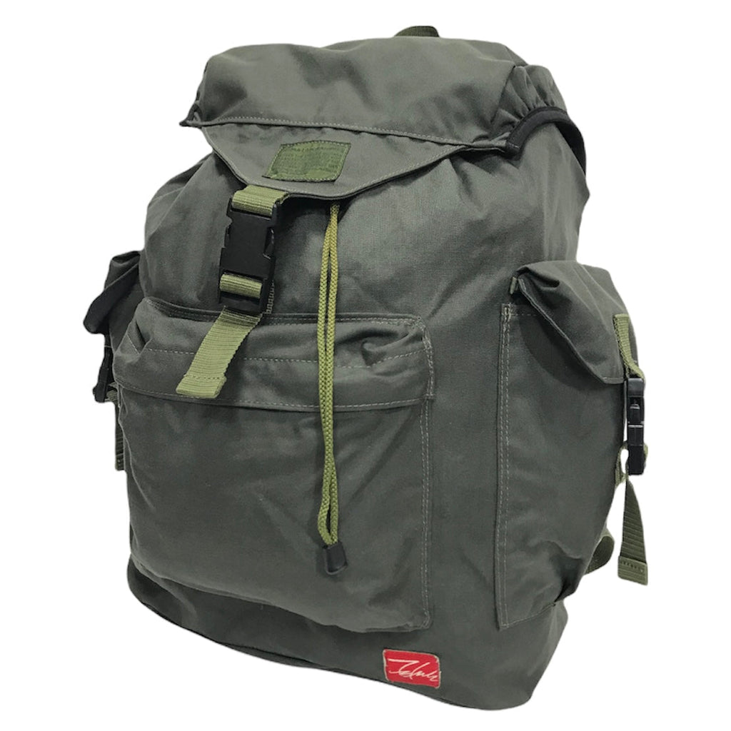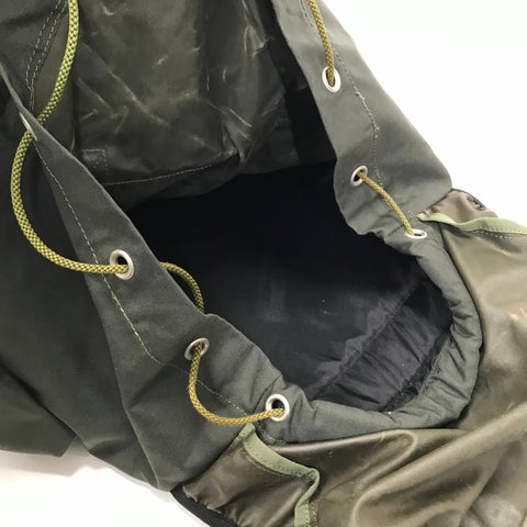 | NOTES | Very good condition! Very rare piece! Some wear/slight stickiness to the rubberized backing of the nylon fabric from age. Otherwise minimal signs of actual use. Nylon body, flap/drawcord closure main pocket, zipper front pocket, flap/buckle closure side pockets. | |