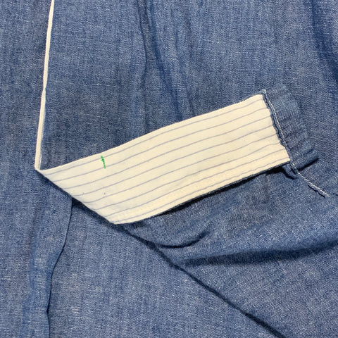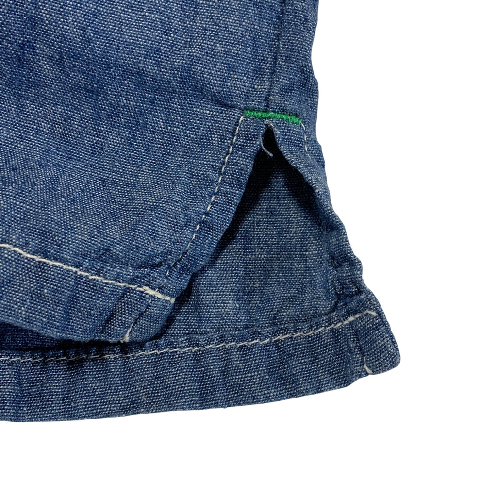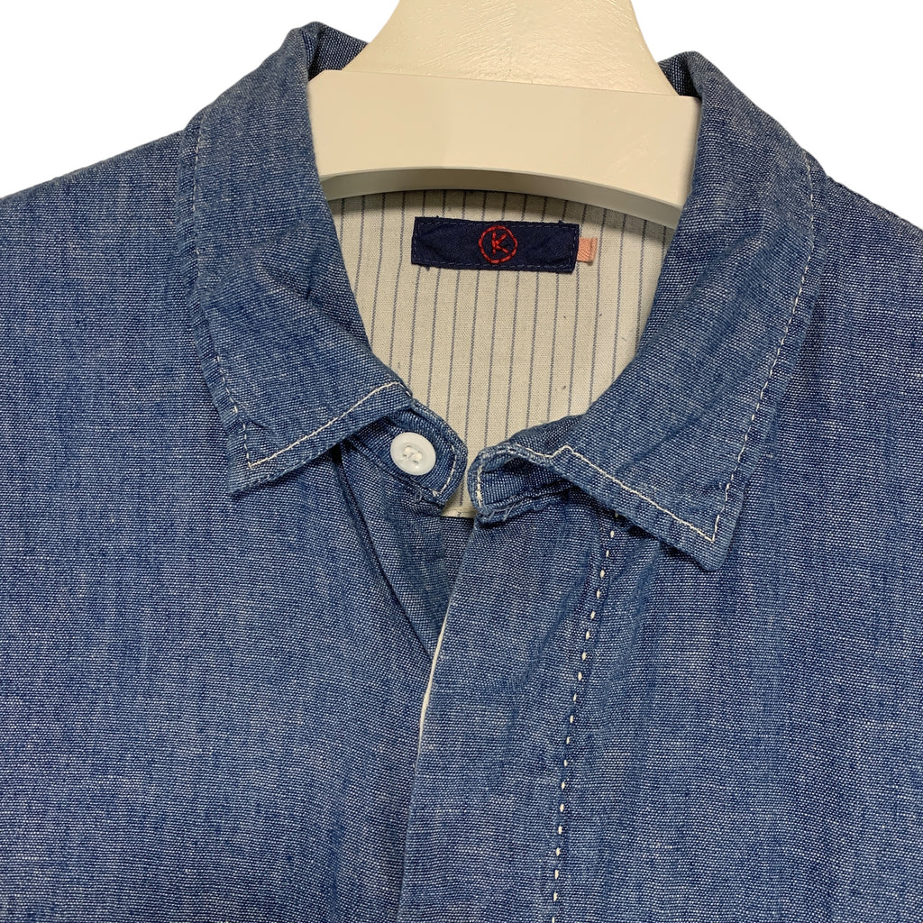 | NOTES | Very little sings of wear. Excellent condition! Chambray cotton body, sashiko stitch detailing, hidden button front closure with hidden contrast fabric accents, metal concho button closure pocket. | |
