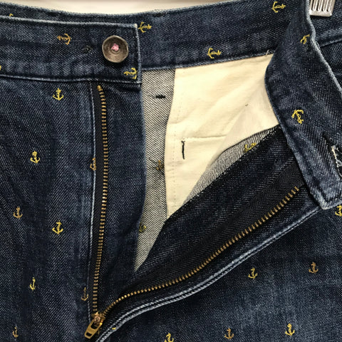 | NOTES | Great condition! Washed indigo cotton body, embroidered anchor design, aged metal buttons. | |