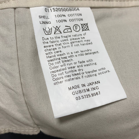 NOTES New with tags and (replacement) bag! Washed cotton chino body, metal button fly, cinch-back waist.
