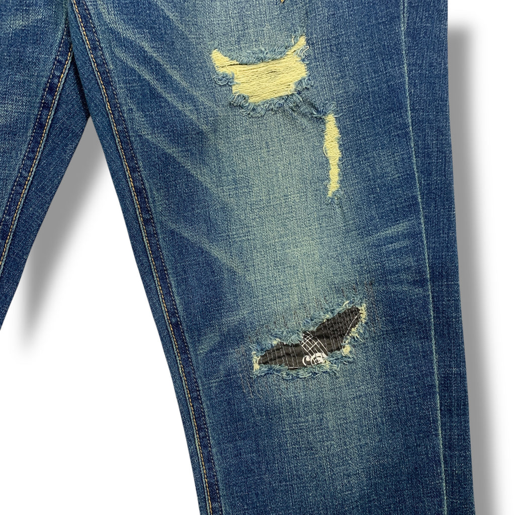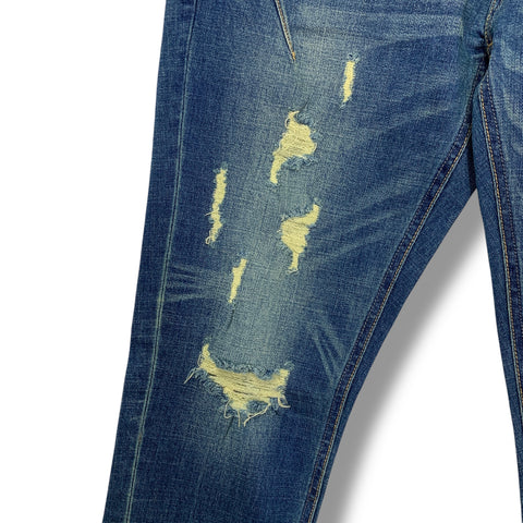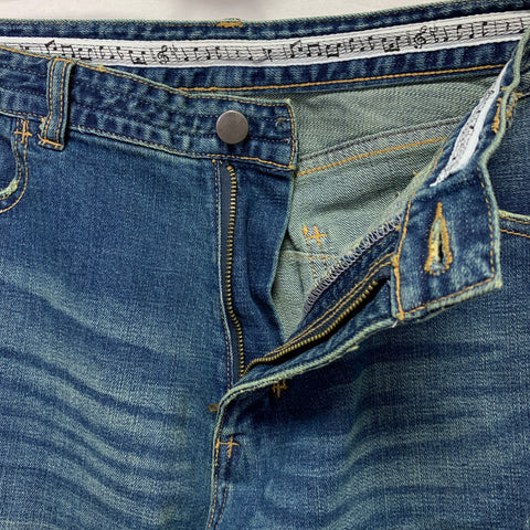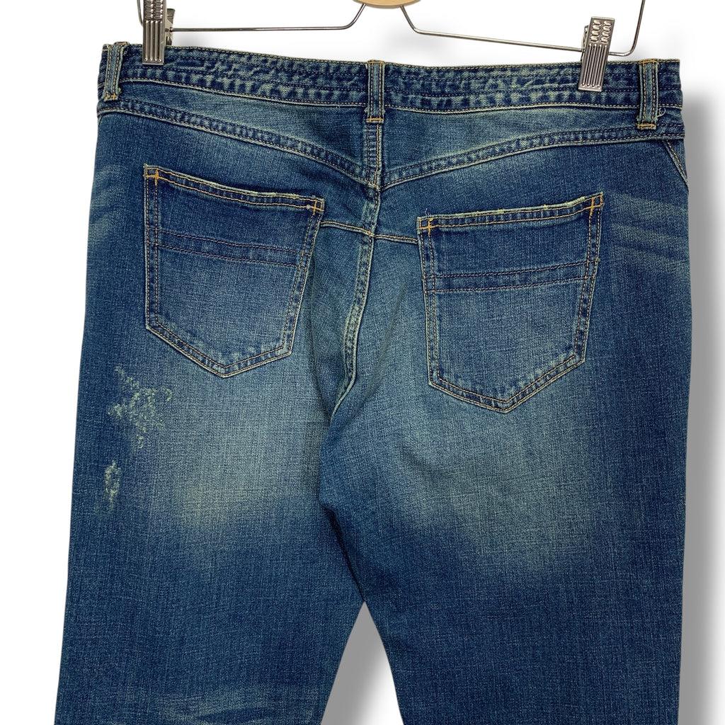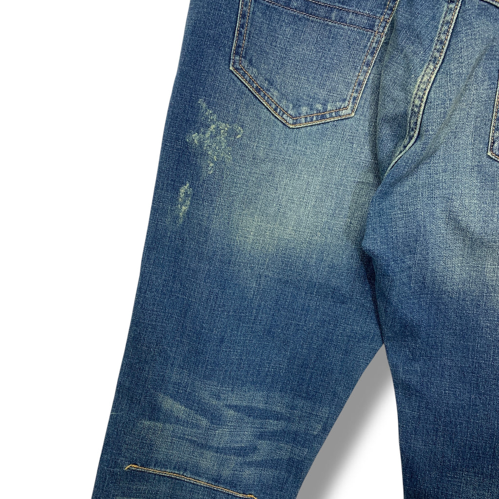 | NOTES | Very light signs of wear. Excellent condition! Heavily washed/distressed cotton body, light stretch, zipper fly. | |