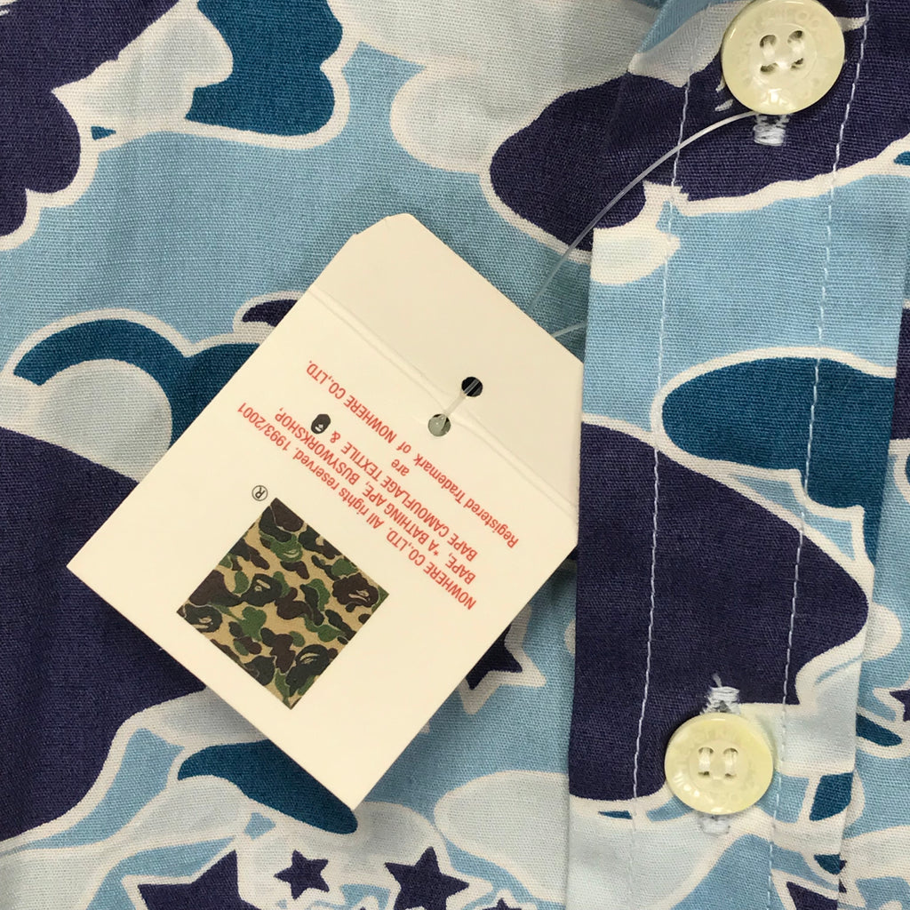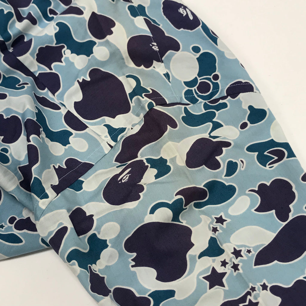 | NOTES | New/unworn. Tag attached. Some sun fading from storage on the shoulders/sleeves. Extremely rare piece in new/unworn condition! Original Psyche camo, Union Jack neck tag, Bape head cuff buttons. | |